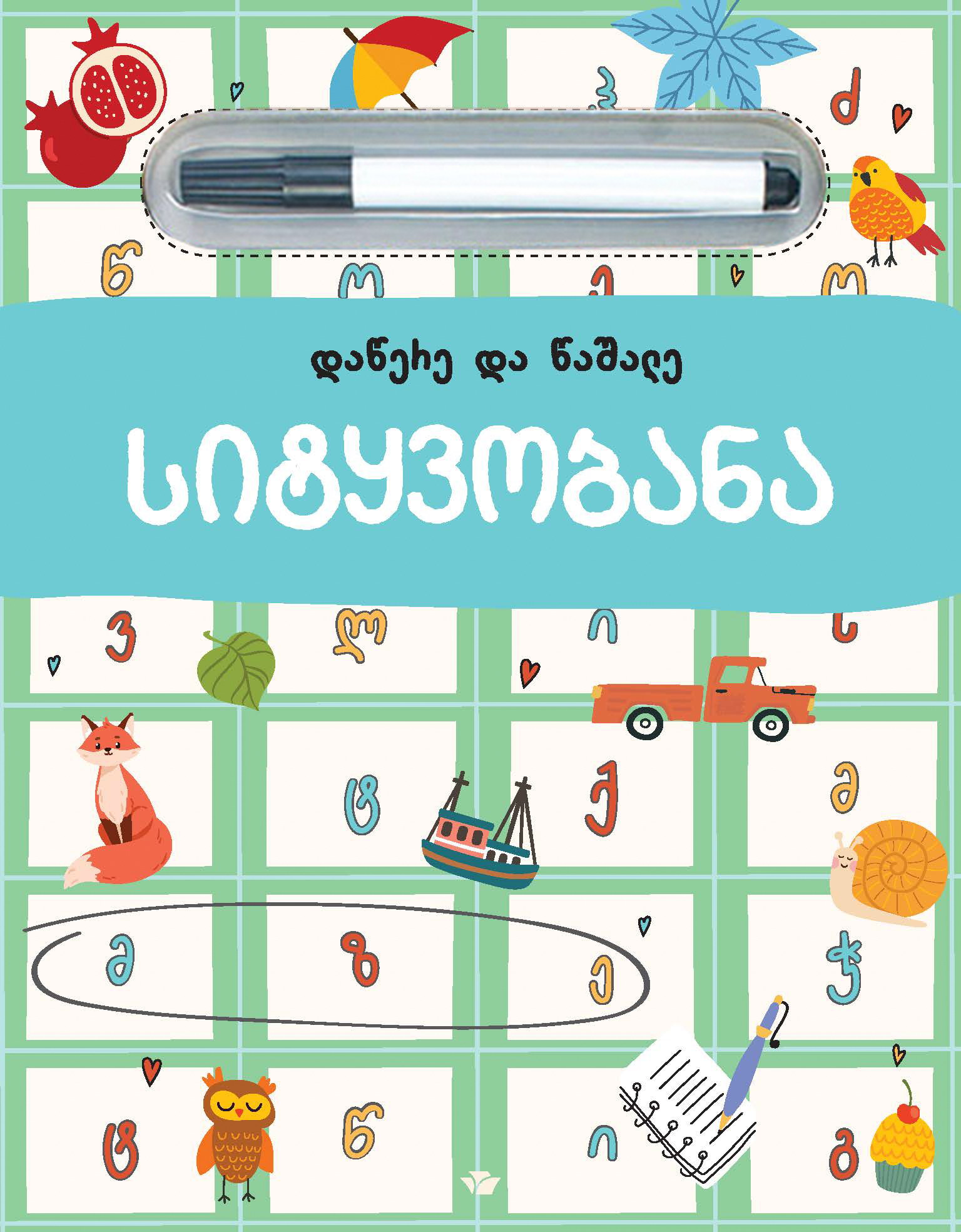 წიგნს, ასევე მოყვება ფლომასტერი, რომელიც მარტივად იშლება და ბავშვებს ამ წიგნის გამოყენება მრავალჯერადად შეეძლებათ.